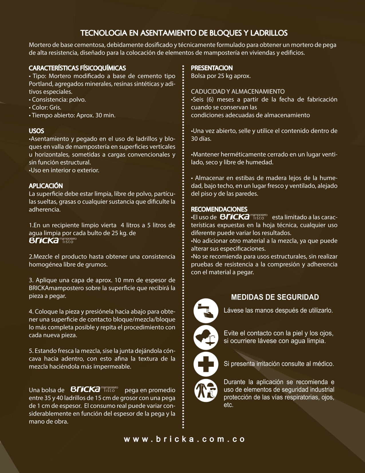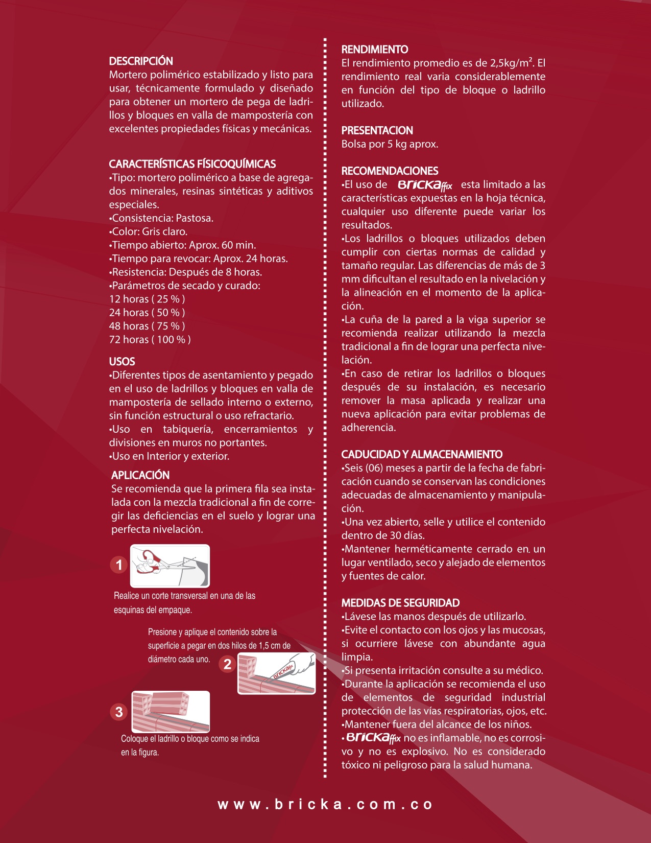 Mortero polimérico estabilizado y listo para usar. Desarrollado para pegar fachaletas, ladrillos y bloques en valla de mampostería. Excelentes propiedades físicas y mecánicas.