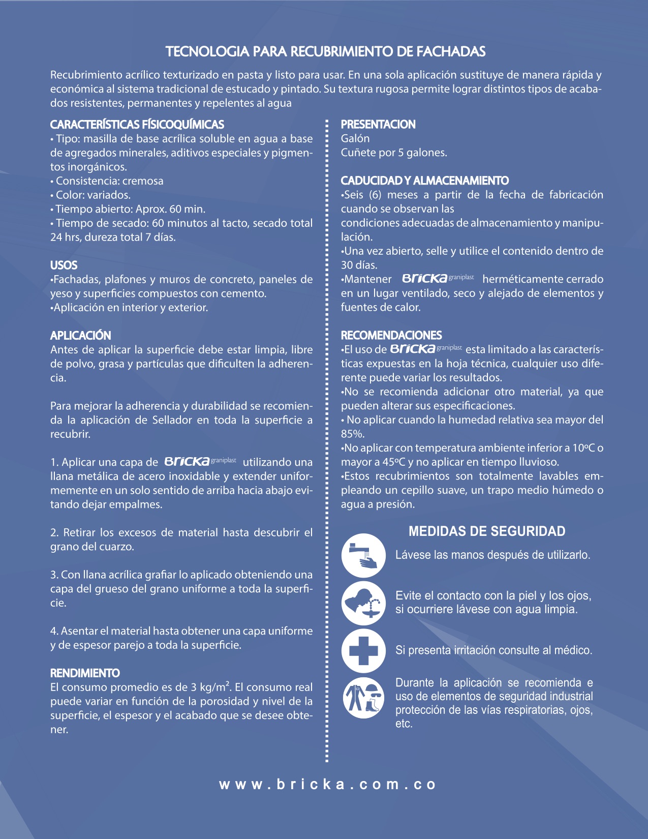 Revestimento de base cementosa y listo para usar. Formulado para aplicar directamente sobre ladrillo, bloques, losas prefabricadas o de concreto y superficies de hormigón.
